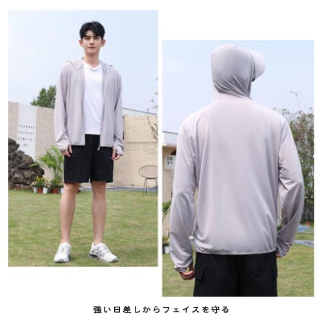 メンズ パーカー 夏用パーカー 夏 UVカット 薄手 フード付き サンバイザー 釣り UVパーカー ゴルフ 旅行グッズ フード付きラッシュガード レジャー 男性用 紫外線カット 取り外し UVカット 吸水速乾 通気性 UVカット