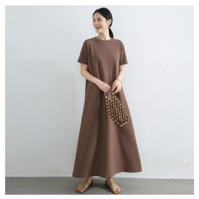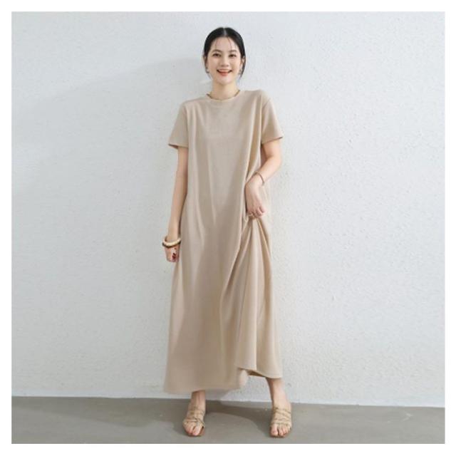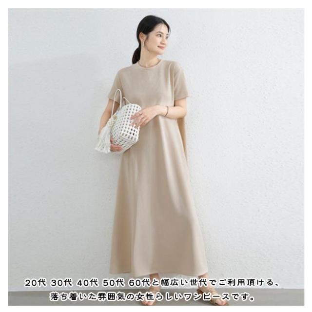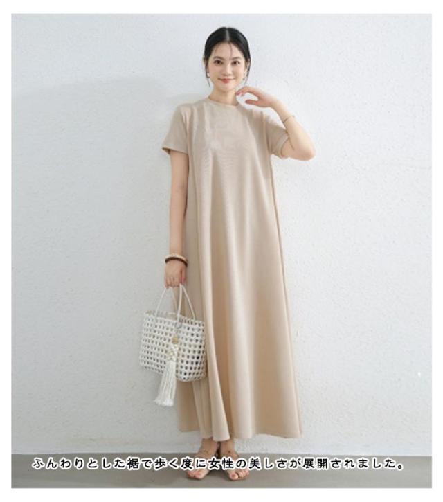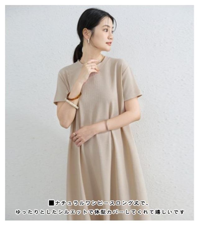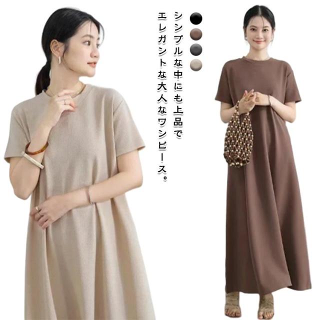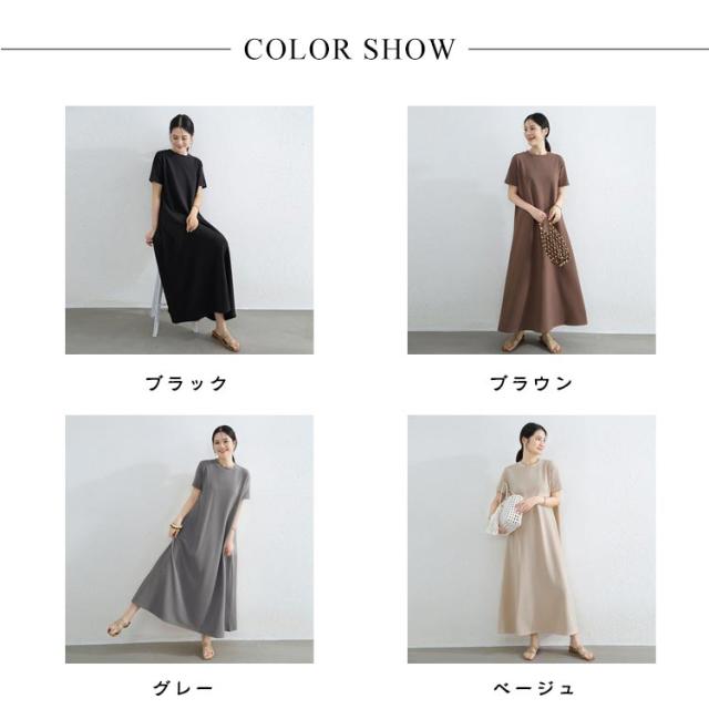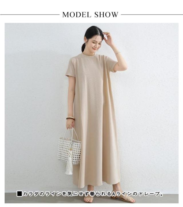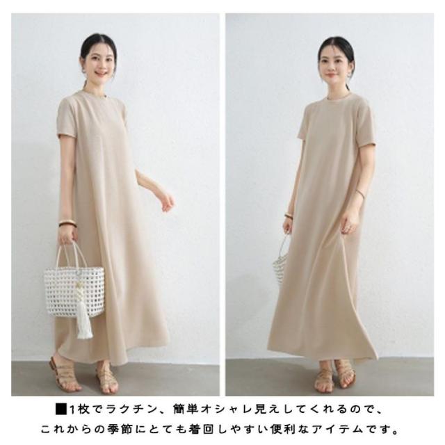 抜け感 マキシ丈ワンピース マキシ丈ワンピ ロングワンピース ドロップショルダー ワンピース レディース カジュアル ロング Aライン クルーネック 半袖 無地 シンプル 夏 細見え 部屋着 マタニティ 華奢見え マキシ丈 通勤