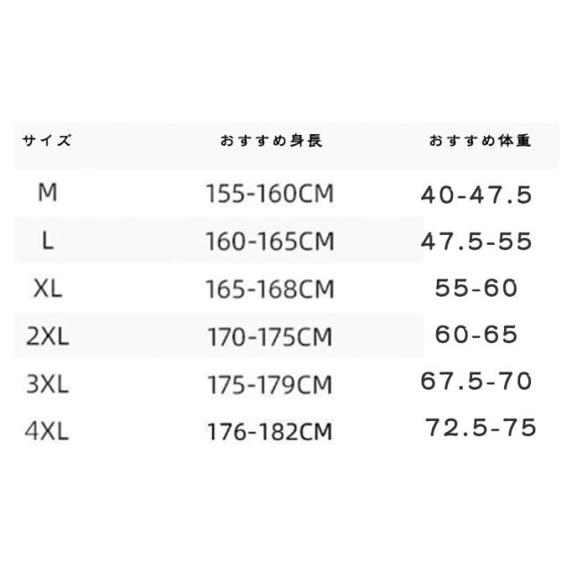 | サイズ | M L XL 2XL 3XL 4XL |