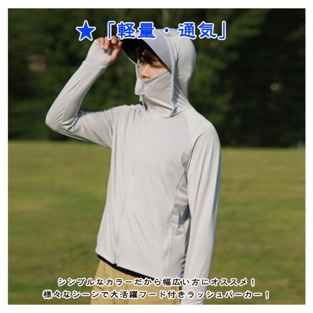 メンズ ラッシュガード パーカー 長袖 日焼け uvカット アウター 夏 通気性 ラッシュパーカー 接触冷感 パーカー 速乾性 ワークマン uvカットパーカー 薄手 UPF50+ 通気性 シンプル uvカット フード付き 紫外線対策 吸汗速乾 uv 涼しい スポーツ アウトドア 釣り