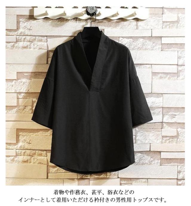 メンズ 洗える Vネック 合衿 5分袖 黒 白 襦袢 男性 Tシャツ 半襦袢 半袖 レディース 着物 半襦袢 和装 肌着 シャツ 下着 作務衣 浴衣 インナー 襟付き カジュアルシャツ 春夏秋 肌襦袢 半襦袢 衿付き 和装下着 紳士 作務衣 甚平