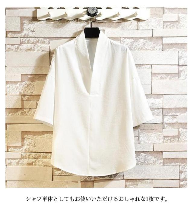 | M〜5XL 衿元を手軽にかっこよくするシャツ型半襦袢。 直接肌の上に着るだけなので、紐類がいらず、着付けがとっても楽なのに、半衿が付いているのでまるで襦袢を着ているかのように見えます。 着物や作務衣、甚平、浴衣などのインナーとして着用いただける衿付きの男性用トップスです。 シャツ単体としてもお使いいただけるおしゃれな1枚です。 | |