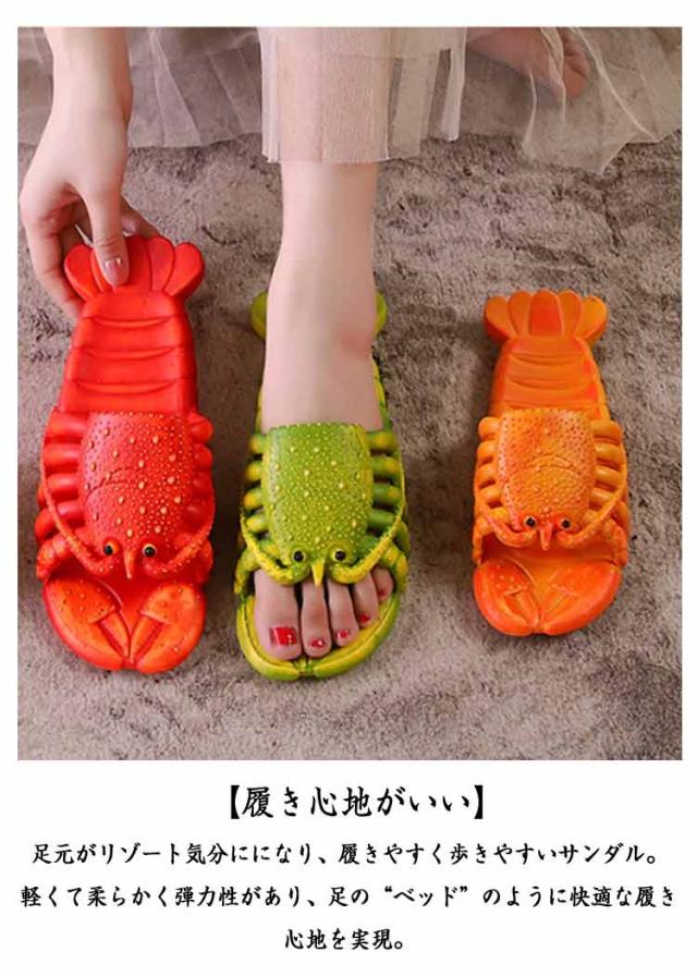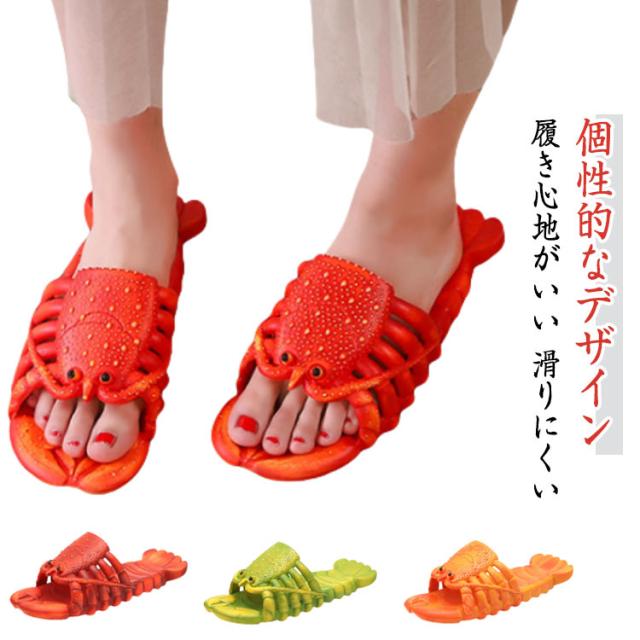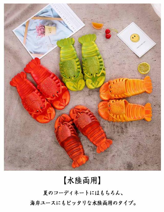 スリッパ 海老 個性的 ロブスター ザリガニ 屋外室内 メンズ キッズ エビ柄 エビ サンダル ユニーク レディース 蝦 えび 男女兼用 えび靴 シャワーサンダル ビーチサンダル 蝦サンダル 海水浴場 親子お揃い 軽量 サンダル 大人