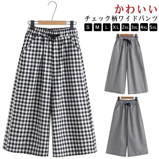 ワイドパンツ レディース パンツ 大きいサイズ 夏用 おしゃれ ワイドパンツ カジュアル 薄手 体型カバー ボトムス チェックパンツ ハイウエスト 夏 ワイドパンツ 通勤パンツ ゆったり かわいい 大人 女性 大きいサイズ