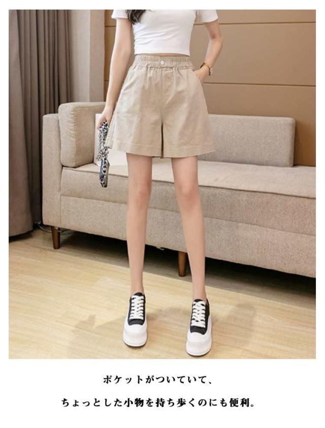 レディース Aライン ショートパンツ ハイウエスト パンツ おしゃれ 綿混 美脚 大人 ショート キュロット カジュアル 短パン ハイウエスト 女性 ショーパン 脚長効果 夏服 無地 シンプル 大きいサイズ ショート丈 ゆったり 体型カバー 韓国ファッション 春夏