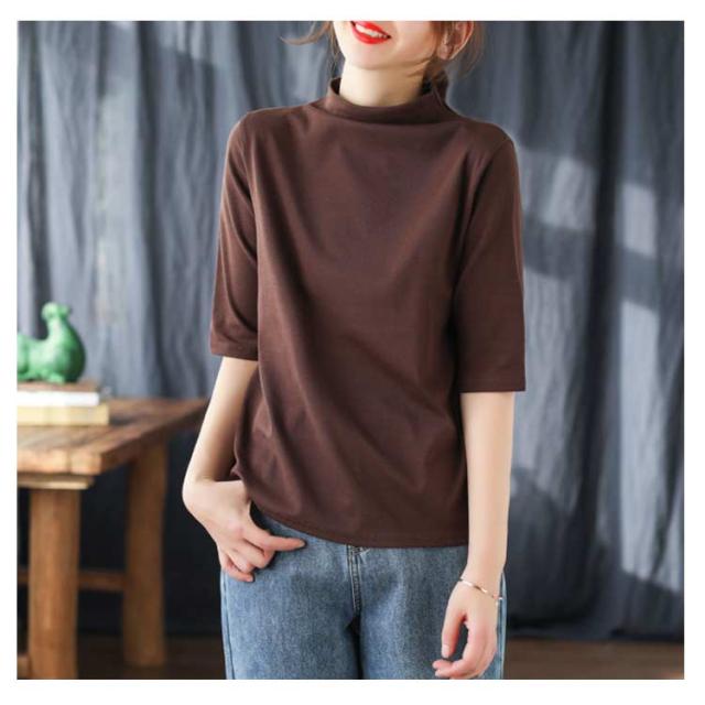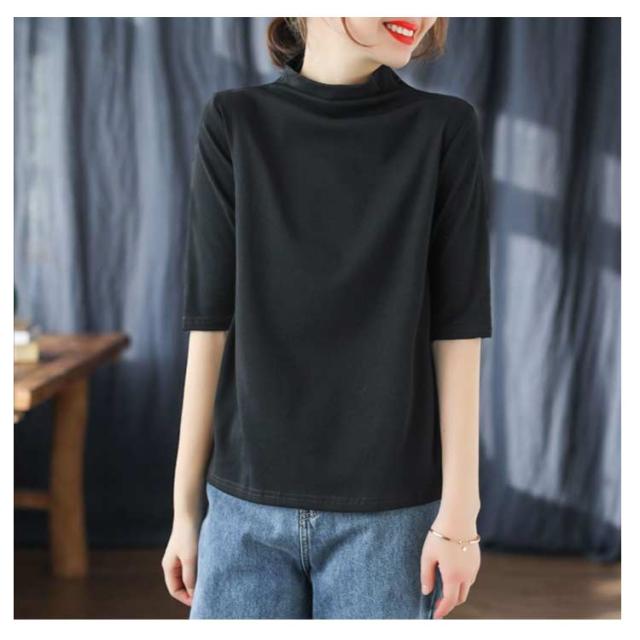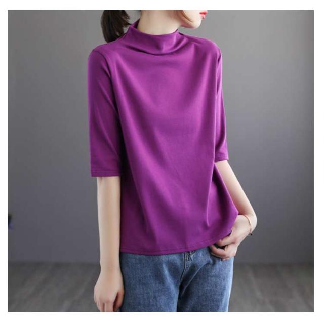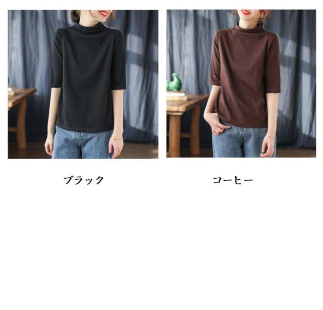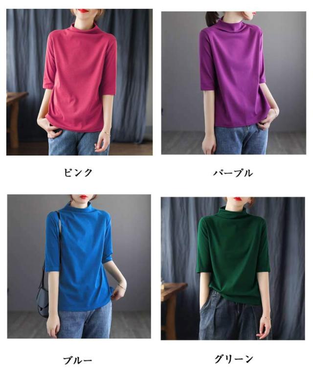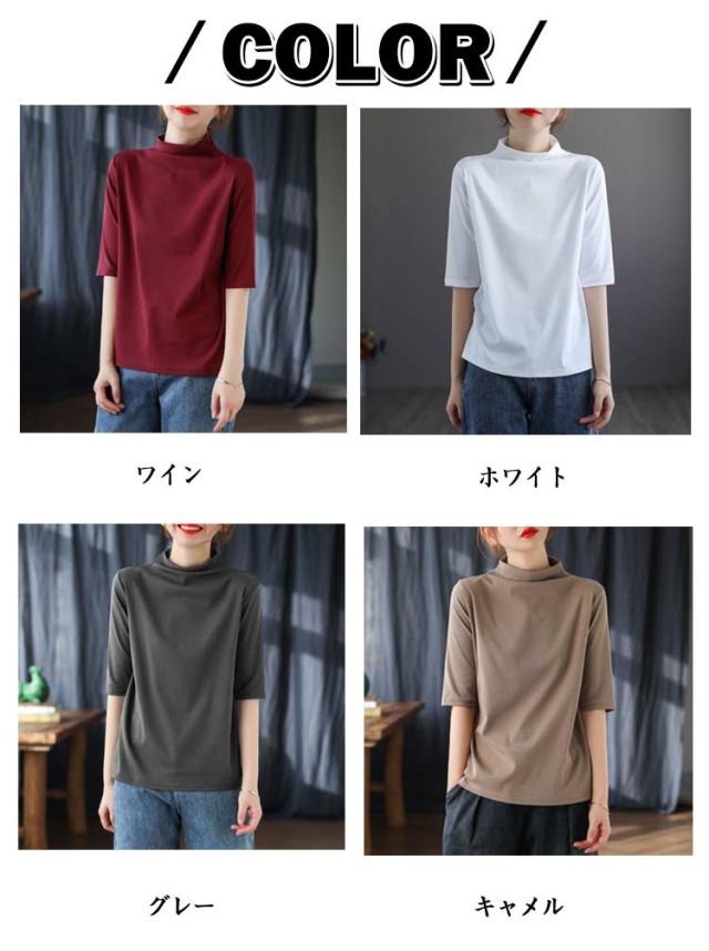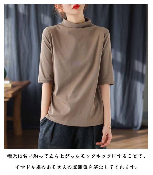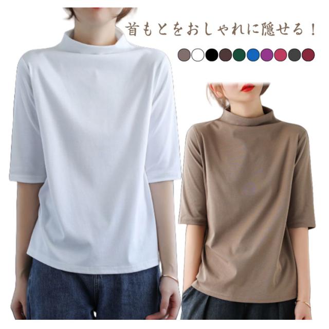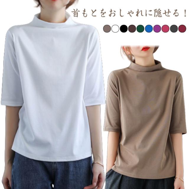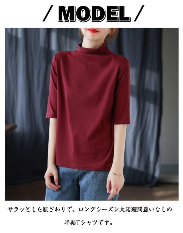 レディース tシャツ 半袖 uvカット 首もとをおしゃれに隠せる!ハイネック トップス ゆったり 5分袖 ボトルネック 夏服 ハイネックtシャツ カットソー 首元保護 紫外線対策 おしゃれ 春 夏 秋 モックネック
