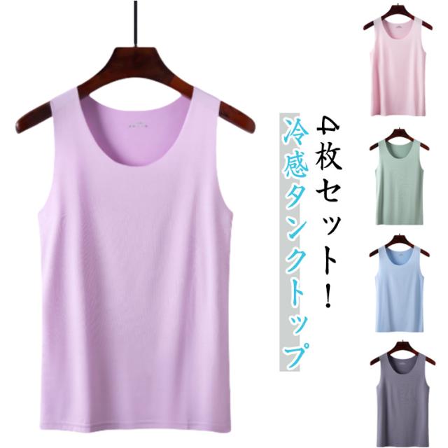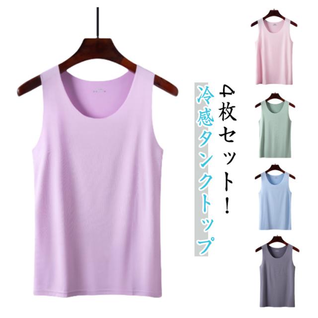 下着 インナー 4点セット 涼感 XL 大きいサイズ 冷感 レディース 4点セット トップス インナー 冷感 ひんやり 肌着 レイヤード 接触冷感 Uネック M キャミソール L 2XL 3XL 4XL 大きいサイズ インナーシャツ