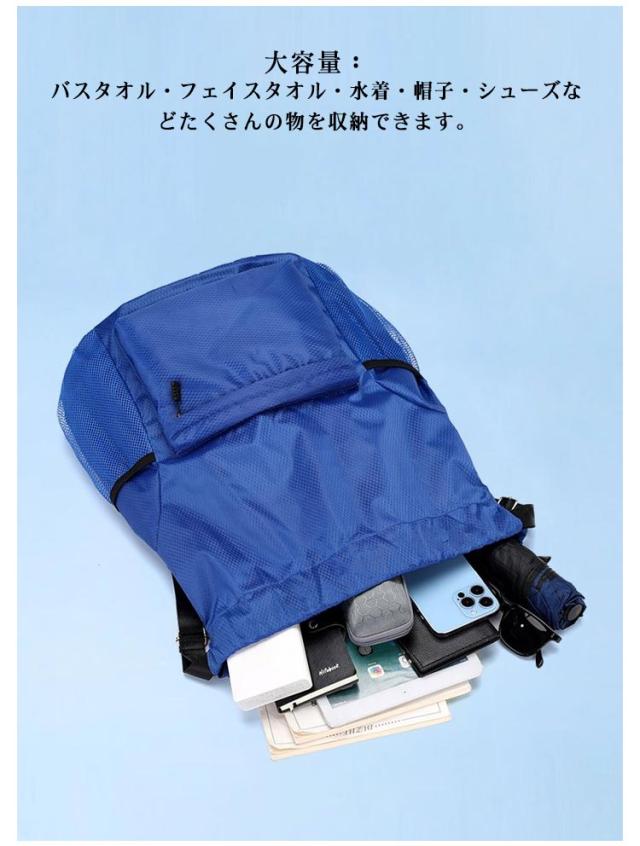 | 大容量:バスタオル・フェイスタオル・水着・帽子・シューズなどたくさんの物を収納できます。 オックスフォード素材で、軽くて通気性も良く丈夫!濡れたものを入れて帰っても、すぐに乾くのでお手入れがしやすく、また、生地自体にある程度の強度が見込めるため長持ちします。 調節可能な肩ヒモ、肩からかけてリュックとしても使えて、手提げとしてもOK。 水泳、サッカー、キャンプ、ショッピング、学校、登山、旅行など様々な場面で活躍します。カジュアル風あふれて旅行に快適さを与えます。 | |