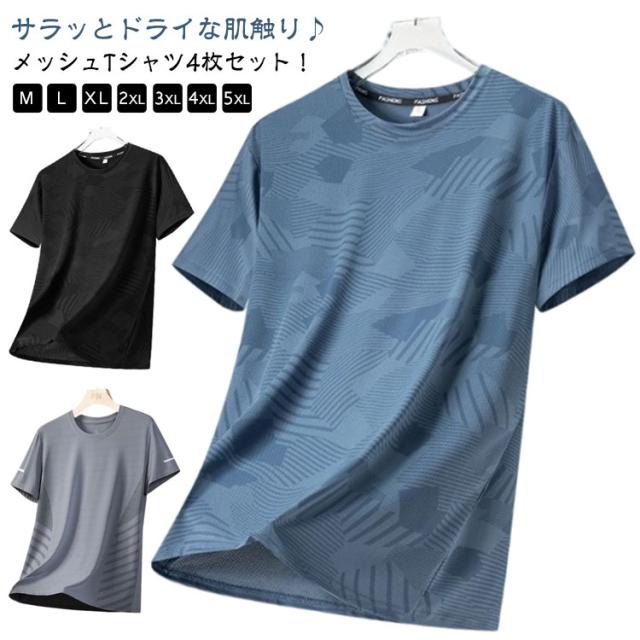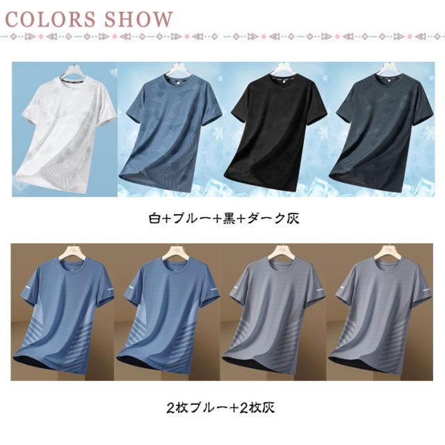 夏 クルーネック トップス tシャツ メンズ 4枚セット 半袖 Tシャツ 大きいサイズ おしゃれ 吸汗速乾 冷感 無地 アイスシルクTシャツ 速乾tシャツ ドライTシャツ カジュアル 冷たい ゆったり 4枚セット 涼しい 通気性 スポーツ インナー 肌着 送料無料 春 夏