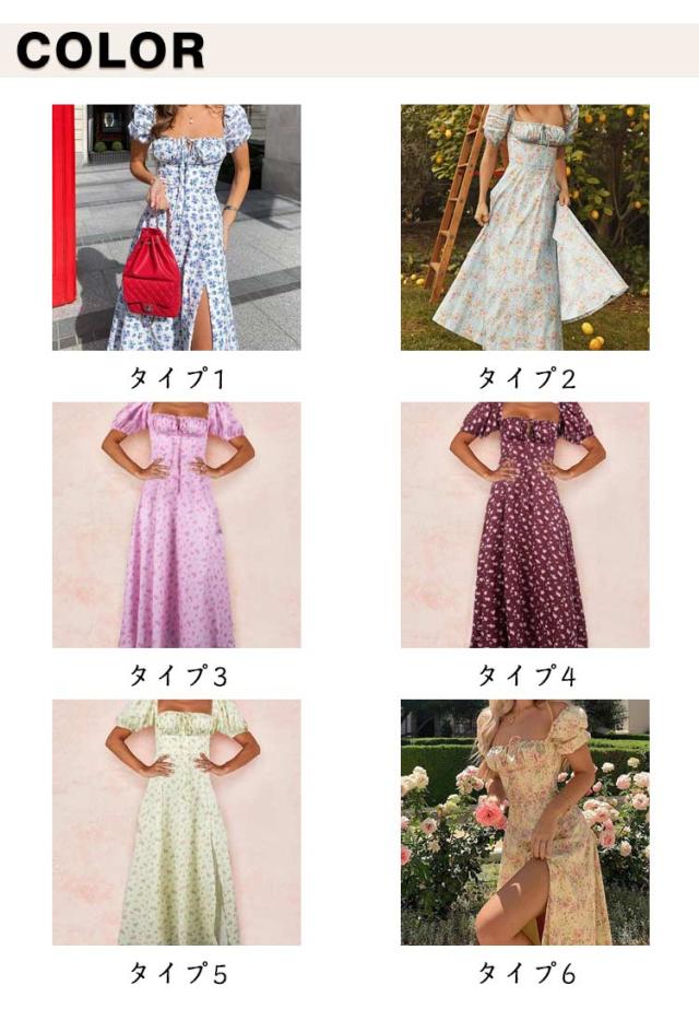 ミモレ丈 スクエアネック 春夏 ロングワンピース レディース 花柄 サイドスリット 着痩せ 花柄 きれいめ エレガント フェミニン おしゃれ 大人可愛い 大きいサイズ S-3XL 夏服