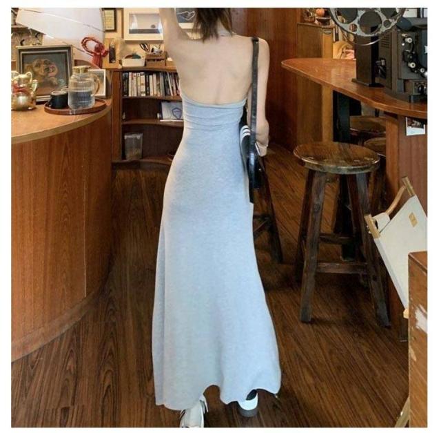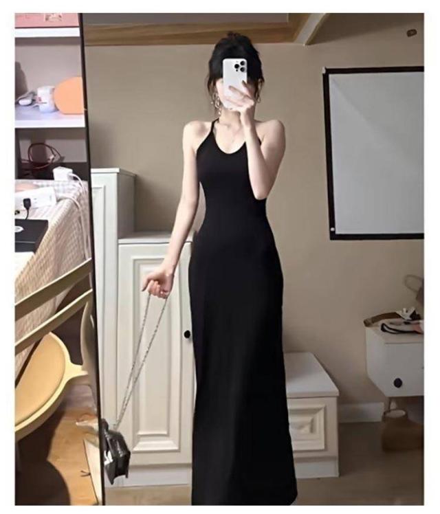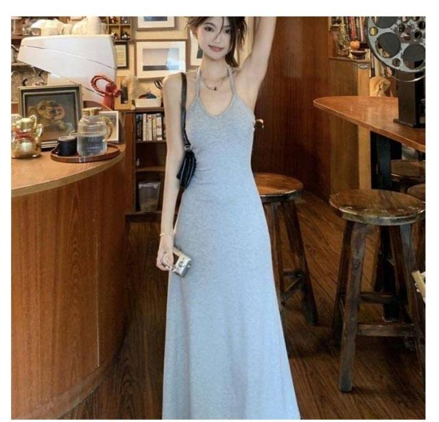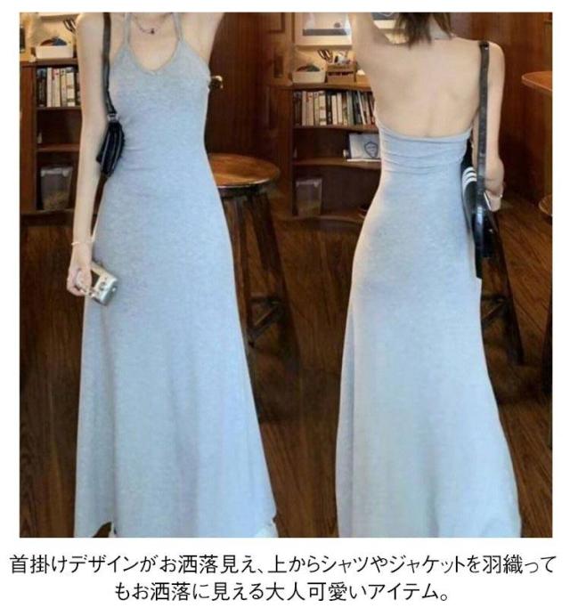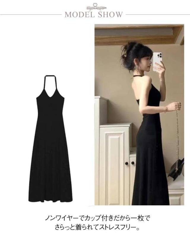 ロングワンピース カップ付き キャミワンピース 首掛け カップ付き 春 夏 きれいめ ノースリーブワンピース カップ付きワンピース ロング丈 マキシワンピース フレアワンピース 黒 グレー 選べる2丈 高身長・低身長向け 伸縮 カジュアル