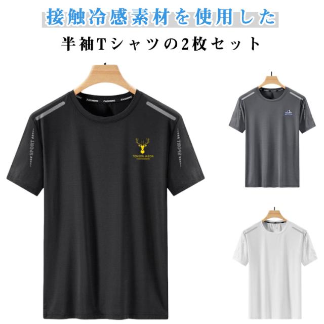 クルーネック ゆったり ストレッチ Tシャツ Tシャツ 半袖Tシャツ トレーニング 接触冷感 ランニング ティーシャツ 接触冷感 吸汗速乾 大人 スポーツ 男性 トップス 接触冷感 2枚セット カットソー ジム 部屋着 夏 大きいサイズ 運動着 父の日 薄手 ギフト プレゼント