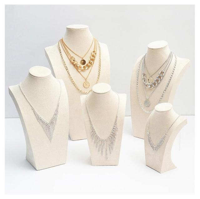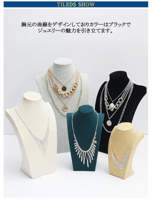 | 20cm 25cm 29cm ネックレス・チョーカー・ペンダントだけでなくイヤリングもかける事ができます。 胸元の曲線をデザインしておりカラーはブラックでジュエリーの魅力を引き立てます。 ベルベット、PUレザー地が商品をより魅力的に引き立て高級感が増します。 店舗の展示はもちろん、ネットショップ・ネットオークションの写真撮影やご自宅でのジュエリーディスプレイなど様々な用途にオススメです。 かけるだけで綺麗にディスプレイできるのでご自宅での普段使いにもピッタリです。 展示会やフリーマーケットはもちろん、撮影用のアイテムとしてもご使用いただけます。 | |