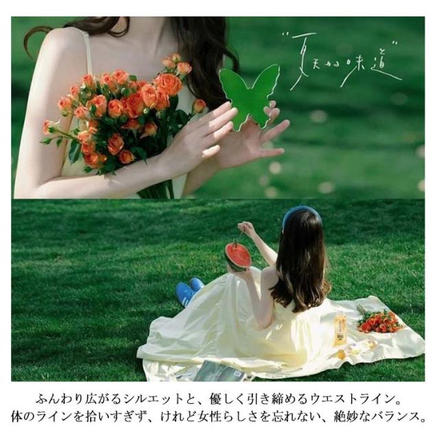| 夏の風にそっと揺れる、やわらかなレモンイエロー。 森の中に現れた妖精のように、静かに、そして美しく佇むあなたへ。 ふんわり広がるシルエットと、優しく引き締めるウエストライン。 体のラインを拾いすぎず、けれど女性らしさを忘れない、絶妙なバランス。 華奢な肩紐から覗く素肌が、陽射しの下でほのかに輝き、 軽やかな生地が一歩ごとにふわりと舞うたび、まるで映画のワンシーンのよう。 柔らかく、繊細で、どこか儚げ。 それでいて、確かな存在感を放つ—— そんな超仙女系のあなたにぴったりの一枚です。 | |