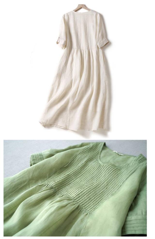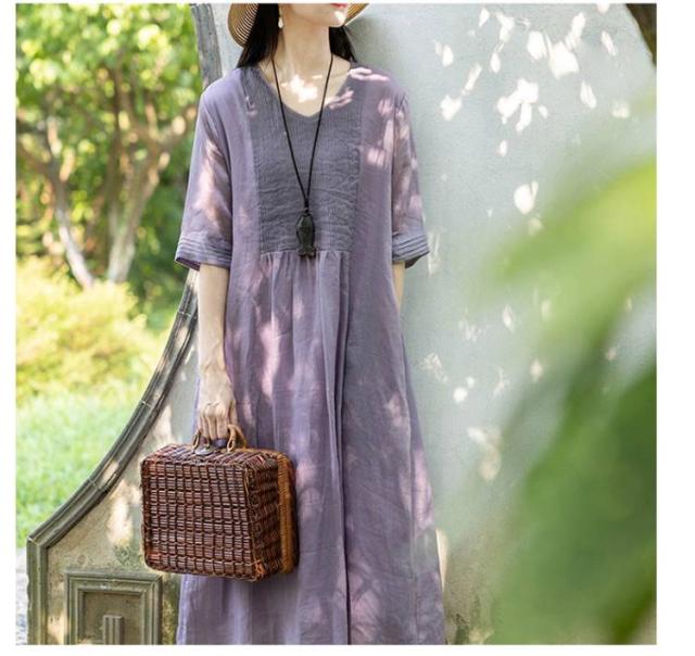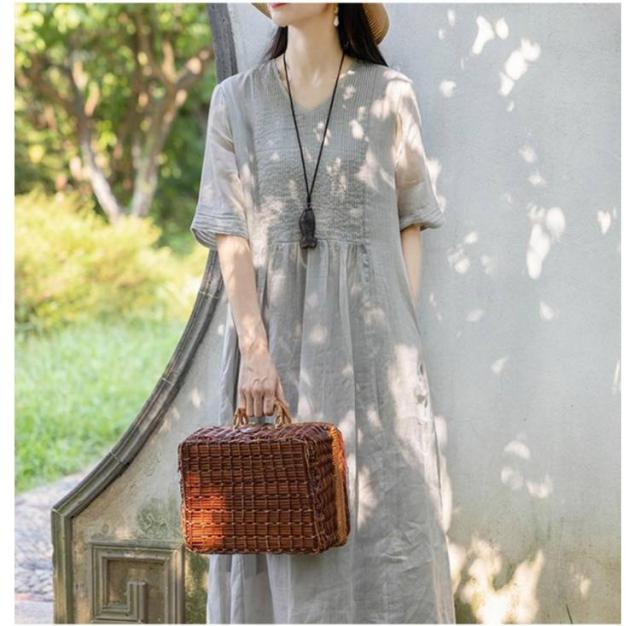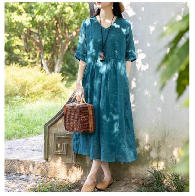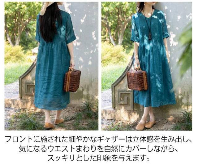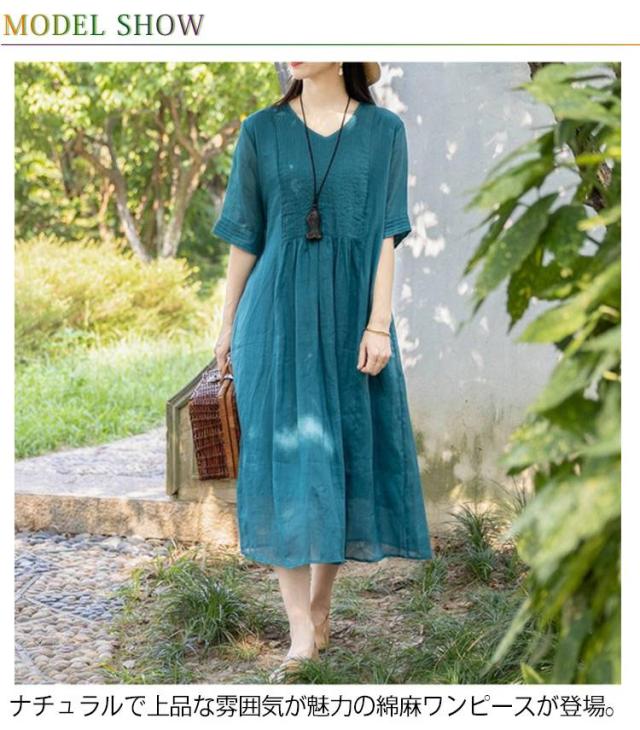 ロング丈 体型カバー 森ガール 綿麻ワンピース 通勤 夏ワンピ 無地ワンピース 涼しい ワンピース リネンワンピース ゆったり 大人可愛い 6色展開
