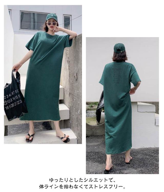 | オーバーサイズで体型カバー&ストレスフリー レディース半袖Tシャツワンピース。 無地と英字プリントの2タイプ、飽きの来ないシンプルなデザイン。 吸湿性、通気性に優れ、サラサラの薄手生地が肌に優しい。 ゆったりとしたシルエットで、体ラインを拾わなくてストレスフリー。 体型カバーが簡単に実現、動きやすさ的にも申し分なし。 お洒落なドロップショルダー設計で更にラフな印象! 流行に左右されず長く愛用でき、春夏秋シーズンに必ず大活躍の一枚! サイドスリットを施した動きやすい作りだから、外出時のお洒落着にはもちろん、おうち時間にもぴったりな一着。 | |