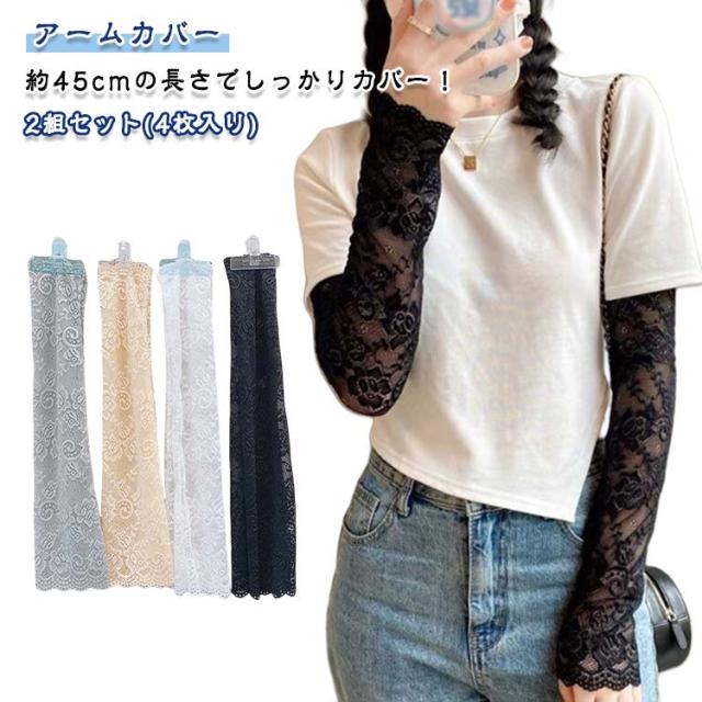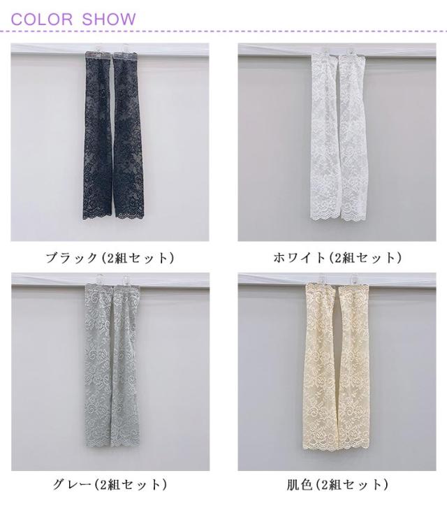 花柄 レディース アームカバー 日焼け防止 傷跡カバー UV対策 レース 紫外線カット アームカバー 肌色 夏用 通気性 おしゃれ フェミニン ブラック ホワイト グレー 2組セット 春夏 レース袖カバー 日焼け防止 薄手 40kg-75kg対応 長さ45cm