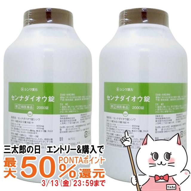 【三太郎の日 最大50%還元】【指定第2類医薬品】[セット]センナダイオウ錠シンワ 2000錠×2個[伸和製薬][便秘薬][送料無料](6061207-set1)