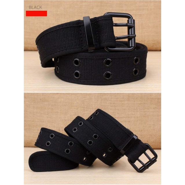 メンズ ダブルピン ベルト コットンキャンバス ダークカラー ワークスタイルにもOK 全5色 カジュアルにも
