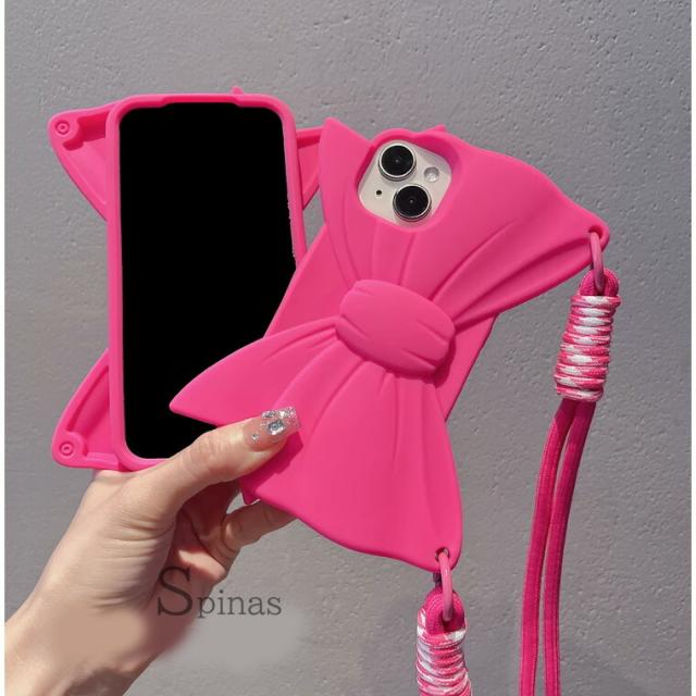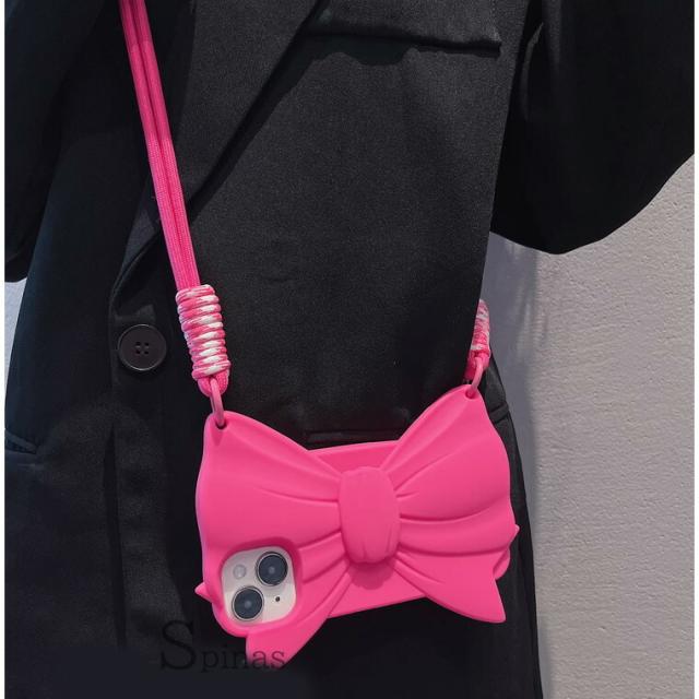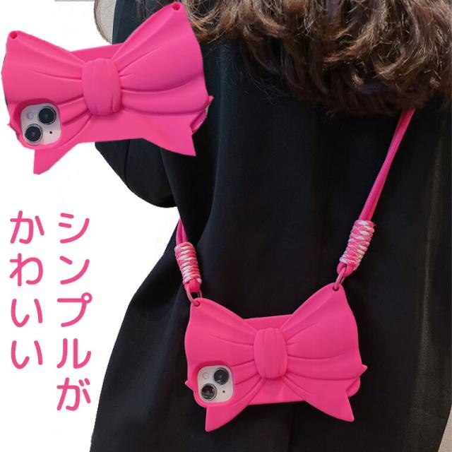 原宿系 シンプルリボン スマホショルダー iphoneケース iphoneカバー シンプル シリコン 派手 ピンク ショッキングピンク ストラップ ロリータ ギャル かわいい お洒落 おしゃれ 可愛い