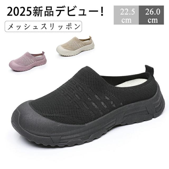 2025新品デビュー レディース スリッポン メッシュスリッポン スニーカー 通気性 無地 歩きやすい 紐なし 厚底 履きやすい クッション性 普段着 室内履き 室内 レディースシューズ