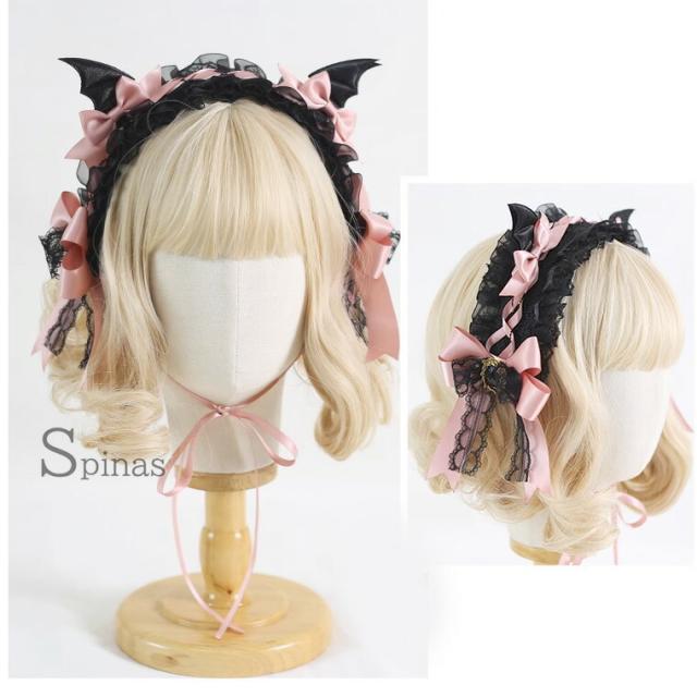 悪魔の羽つき ヘッドドレス ロリータ コスプレ 変装 仮装 キャップ ヘッドアクセサリー 豊富な品揃え ピンク レッド パープル ブラック