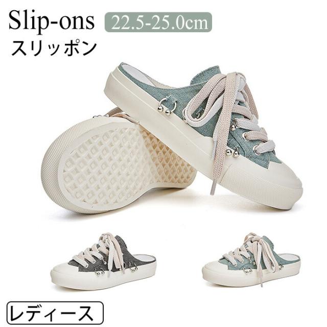 スニーカー かかとなし スリッポン レディース サボサンダル 厚底 クロッグサンダル デニム キャンバス ぺたんこ フラット レースアップ スリッポンシューズ カジュアル 履きやすい 疲れ スリッパ風