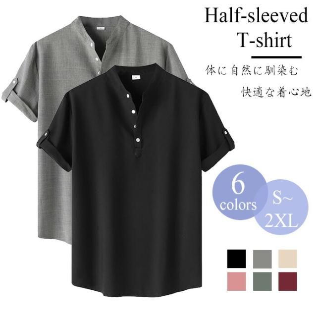 メンズ シャツ ワイシャツ 半袖 五分 トップス Tシャツ カットソー 通販 ブラック ライトグレー ダークグリーン カーキ ピンク ワインレッド S M L XL 2XL