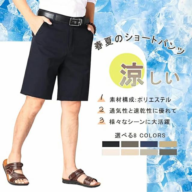 ショートパンツ メンズ ハーフパンツ 夏服 短パン ゴルフパンツ 大きいサイズ ゆったり 半ズボン 人気 カジュアル 無地 ポリエステル 涼しい 通気速乾 ストレートパンツ 春夏 快適