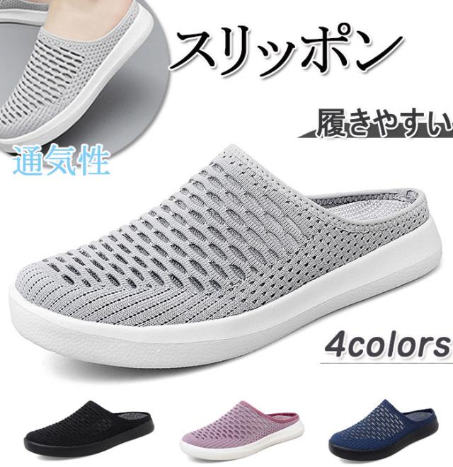 スリッポン サンダル レディース スニーカー 歩きやすい 疲れない 安全靴 ミュール ニット 夏 通気性 快適 メッシュ 厚底サンダル 滑り止 無音 軽量 柔らかい ハーフスリッパ カジュア 着脱簡単