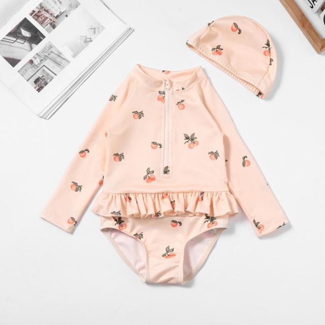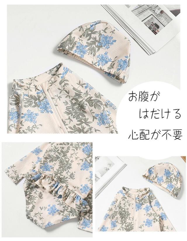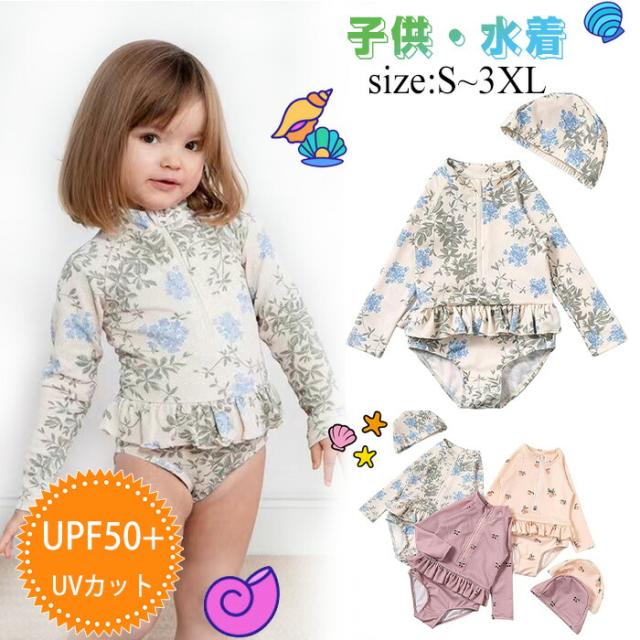 ベビー 水着 女の子 オールインワン 赤ちゃん ラッシュガード 子供 キッズ スイムウエア 長袖 ワンピース水着 帽子付き ロンパース スイムウェア フリル 水着体型カ 紫外線対策