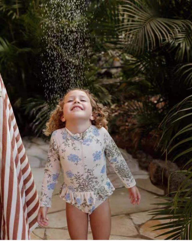 お腹がはだける心配が不要なロンパースタイプの水着は、活発でわんぱくなお子様にピッタリ
