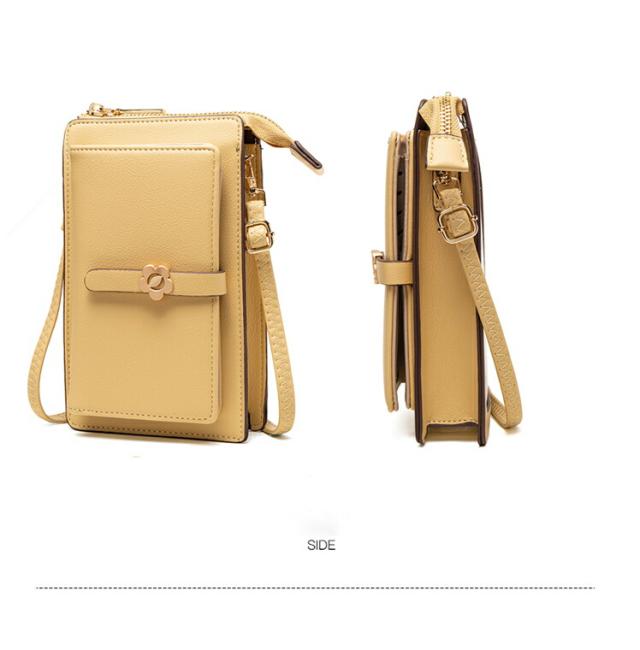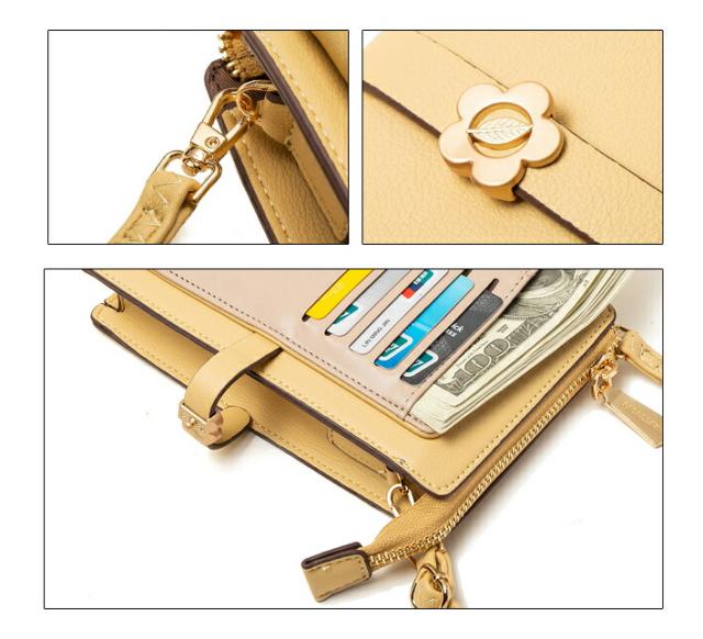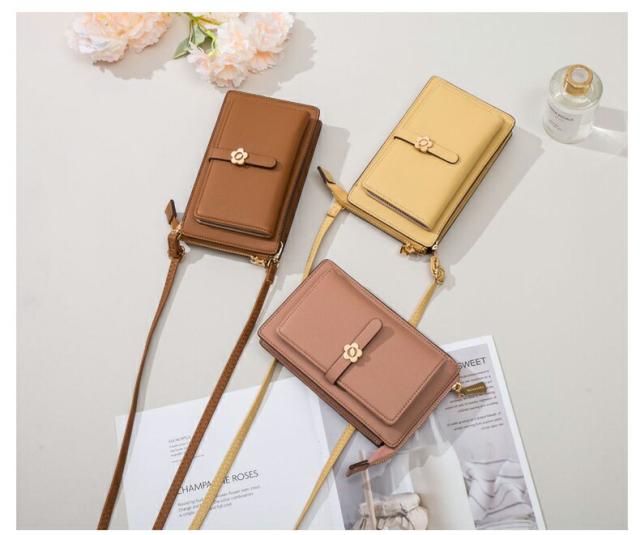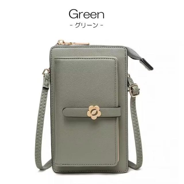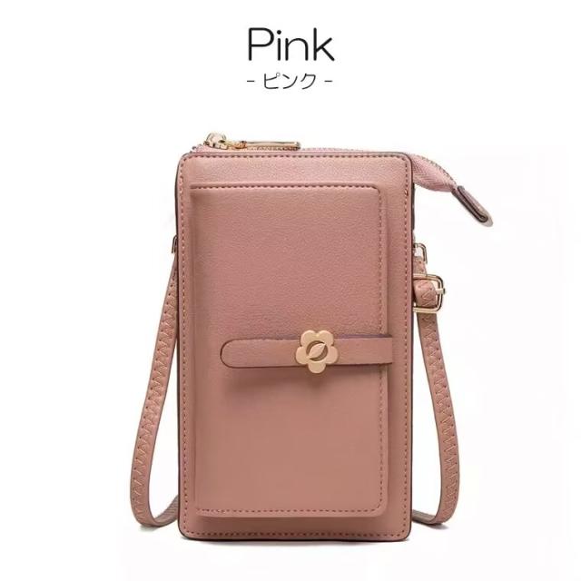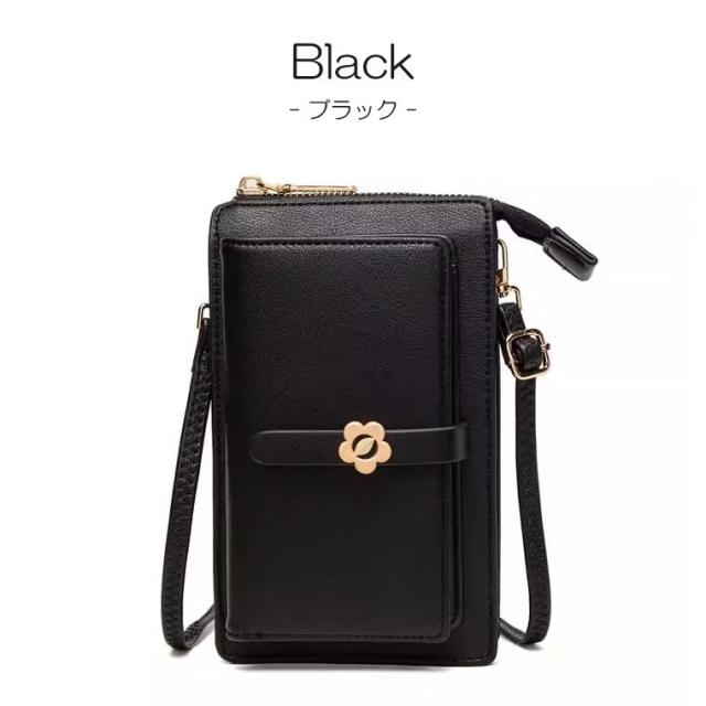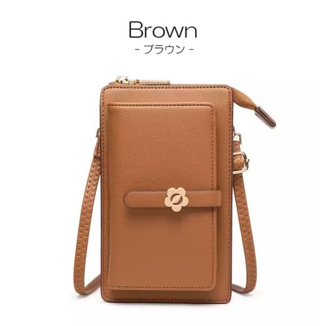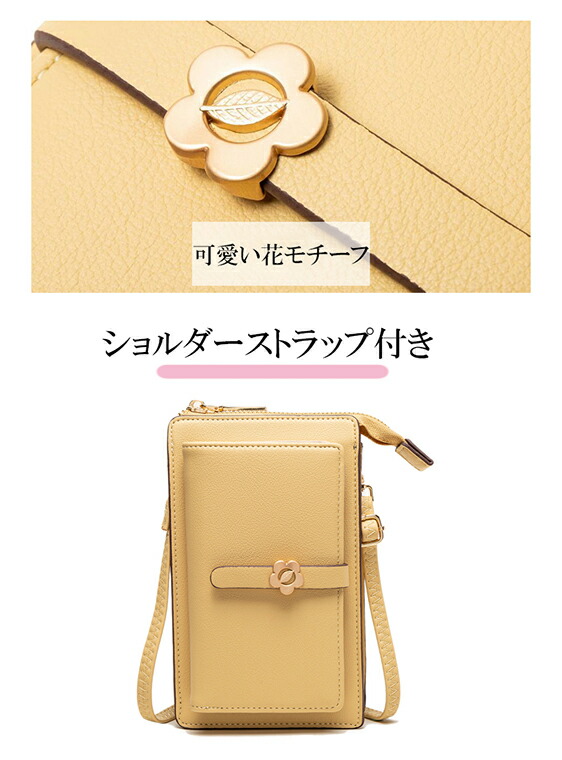 留め具は可愛いお花モチーフ、彼女/妻/母 女性へのプレゼントとしてぴったりのスマホショルダーバッグ。