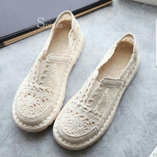 かぎ編みレースが涼しげ 40代 50代 レディース靴 スリッポン 新登場! 35(22.5cm) 36(23m) 37(23.5cm) 38(24cm) 39(24.5cm) 40(25cm) ベージュ ホワイト グレー