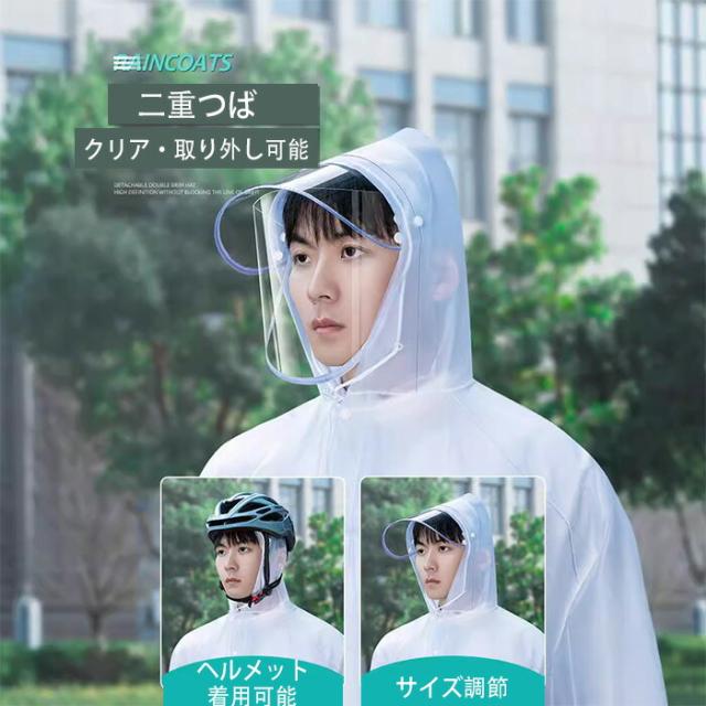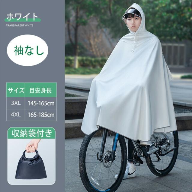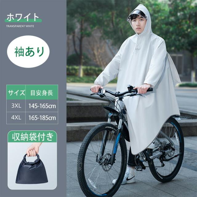 レインコート自転車 リュック対応 レインポンチョ 透明バイザー 袖あり 袖なし 雨合羽 反射テープ 防水 防風 アウトドア 梅雨 豪雨対策 透明 ホワイト収納袋付き レディース 自転車用レインコート
