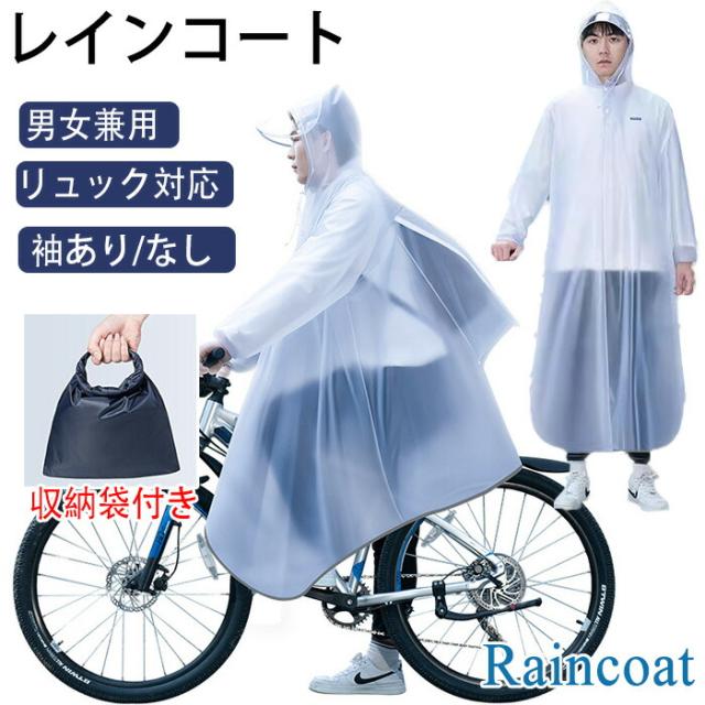 レインコート自転車 リュック対応 レイ レインウエア レインコート 続々入荷中 透明 (袖あり) 透明 (袖なし) ホワイト (袖あり) ホワイト (袖なし) 3XL 4XL