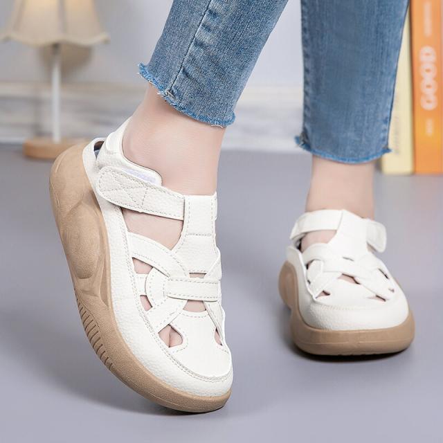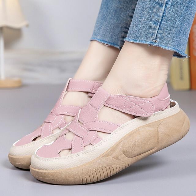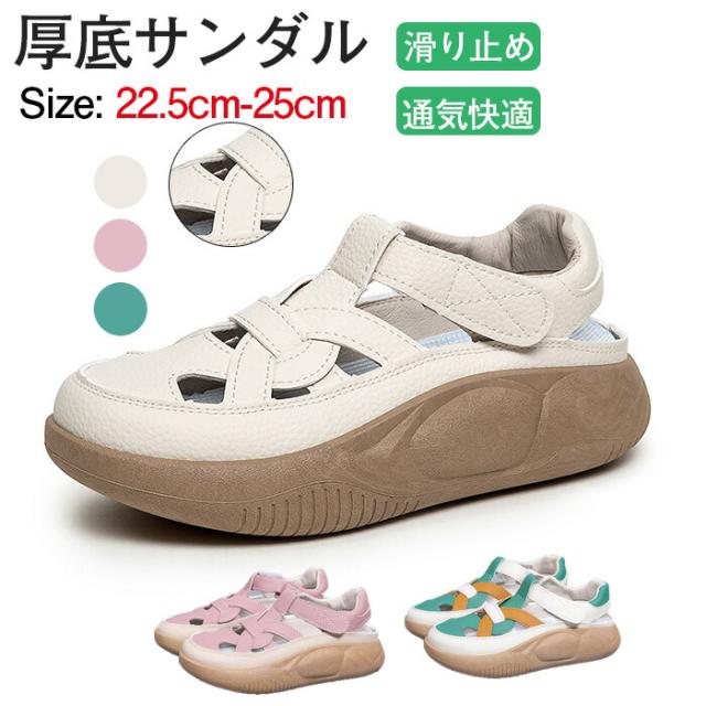 レディース プラットフォーム サンダル PU 厚底 クローズドトゥ デート ショッピング 旅行 ビーチ用 通気穴 春夏用 おしゃれ ファッション 女子力 安定感
