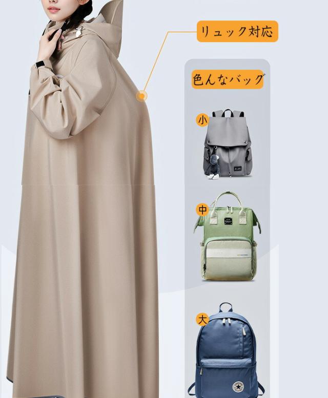 【レインコート レディース ロング】自転車、リュックに対応可能な男女兼用のレインコート。膝下までカバーするロング丈、体がしっかり覆われ、レインブーツを履けば足元まで濡れない、全身を雨から守ることができます。伝統的なレインコートと違い、これはただのレインコートだけでなく、オシャレなデザインで旅行の時はコートとしても使えます。
