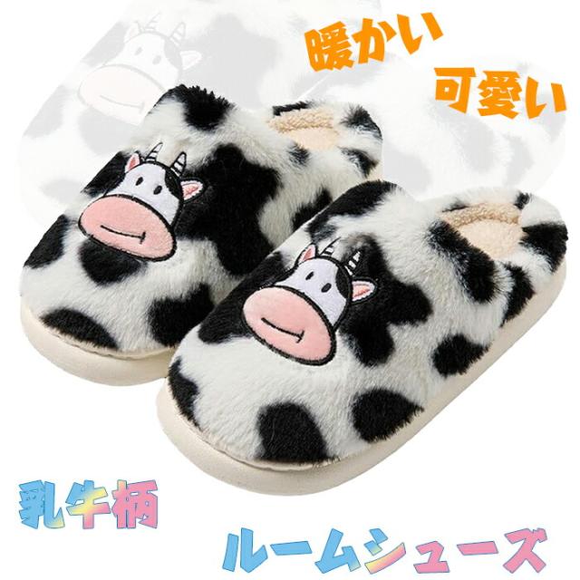 スリッパ 室内 メンズ レディース もこもこ ルームシューズ 乳牛柄 可愛い 暖かい 室内スリッパ 軽量 静音 滑り止め 室内履き 柔らかい 美脚 履き心地良い おしゃれ 人気 可愛 あったかスリッパ