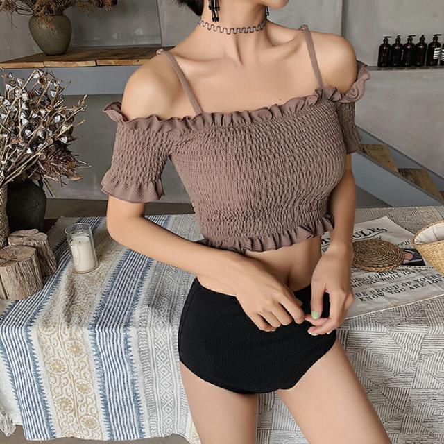 水着 レディース 体型カバー ビキニ オフショル 無地 タンクトップ オフショルダー 水着セット レディース水着 ママ ラッシュガード 中学生 高校生 20代 40代 50代 上下 30代