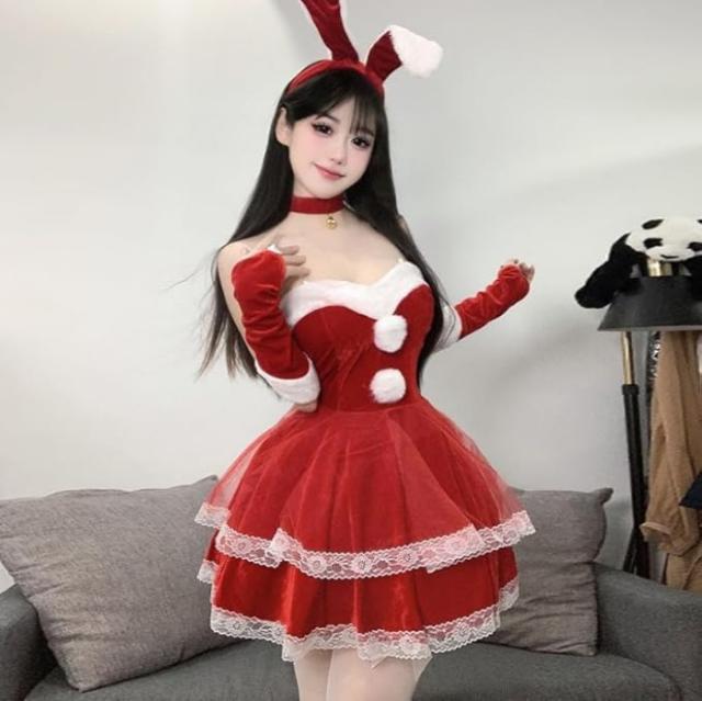 【広い用途】バニーガールのクリスマス衣装!クリスマス、パーティー、文化祭、学園祭、忘年会、ハロウィン、コスプレ変装、イベント、演出服、ダンス衣装などにおススメです。