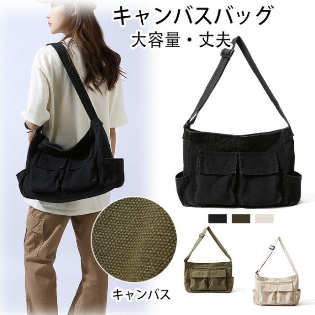 ショルダートートバッグ キャンバスバッ バッグ 男女兼用バッグ ショルダーバッグ メッセンジャーバッグ 通販 ブラック グリーン ベージュ