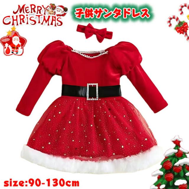 サンタ衣装 子供用 女の子 クリスマス サンタドレス ワンピース 赤 レッド フォーマル 暖か素材 パーティー用 コスチューム ドレス パ サンタクロース