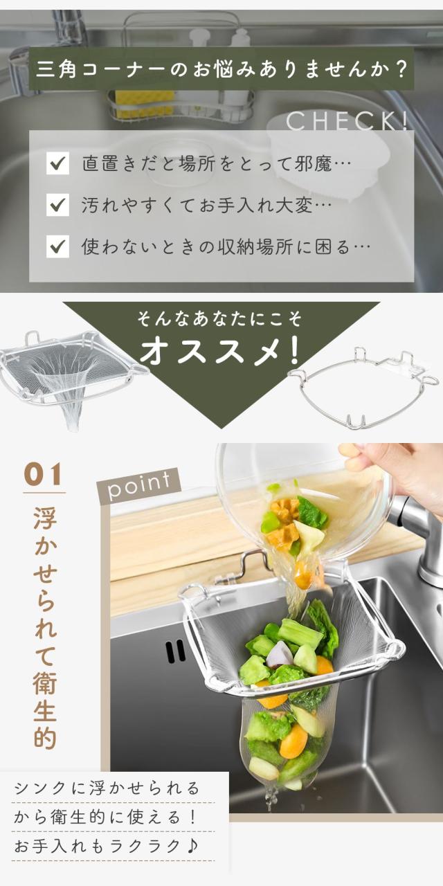 キッチンネットホルダー/ネット付き/水切りフック/三角コーナー/シンク/水切り/生ゴミ/調理/キッチン/流し台/衛生的/清潔/ポリ袋/浮かせる/洗面台/シンク周り/ニオイ防止/虫/小バエ/対策/防臭/洗面所/レジ袋/ビニール袋/キッチングッズ/キッチン用品/米とぎ水切りフック/米とぎ/排水溝/排水口/虫/コーナー/いらない/本体付き/吸盤式/ステンレス製/生ごみスタンド/水切りネット対応/折りたたみ/100枚付き/省スペース/キッチンドレイン/キッチン雑貨/水槽対応/生ゴミ処理便利グッズ/おしゃれ