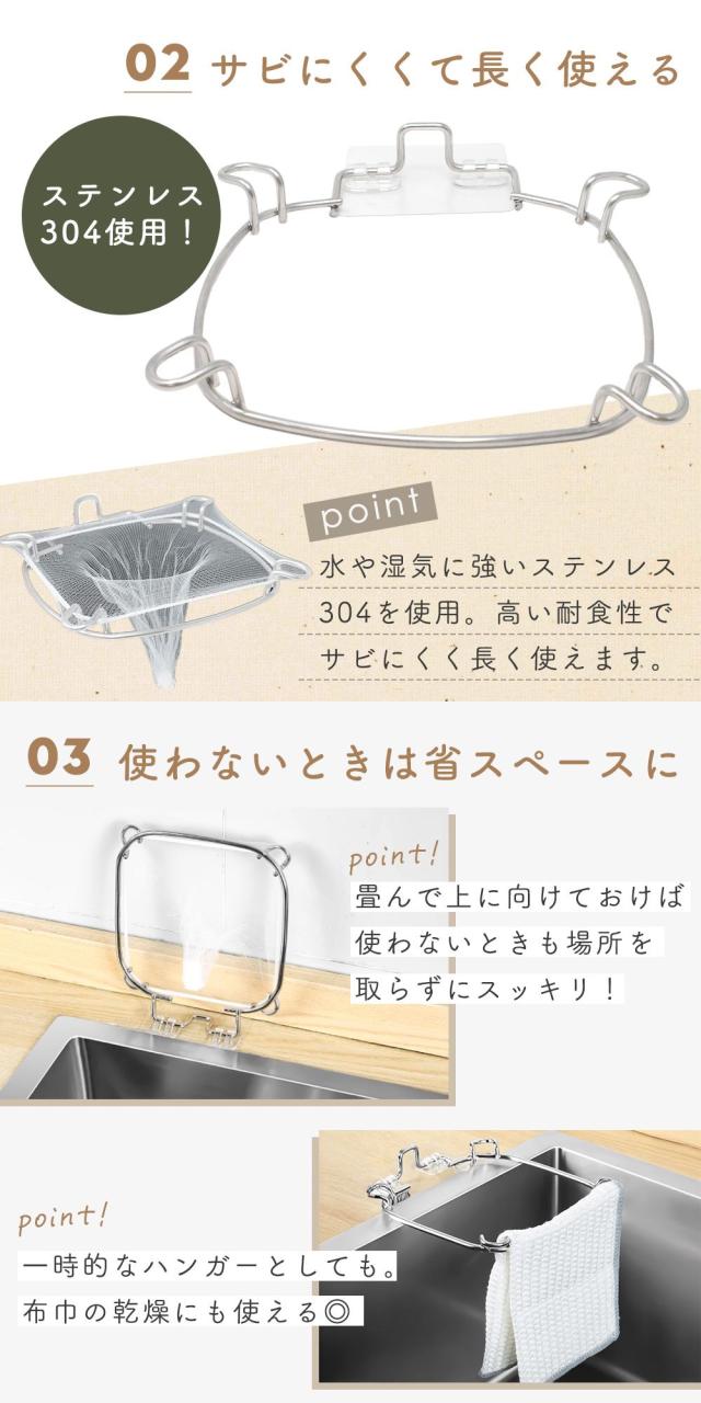 ・シンクに浮かせて衛生的!キッチンネットホルダー