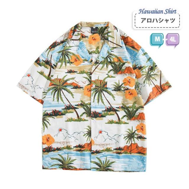 アロハシャツ レディース オシャレ 夏物 リゾート ゆったり シンプルデザイン ヴィンテージ風 ハワイアン フリーサイズ 開襟 半袖 オープンカラー カジュアル ストリート 大きいサイズ 4L mo004x1x1m5