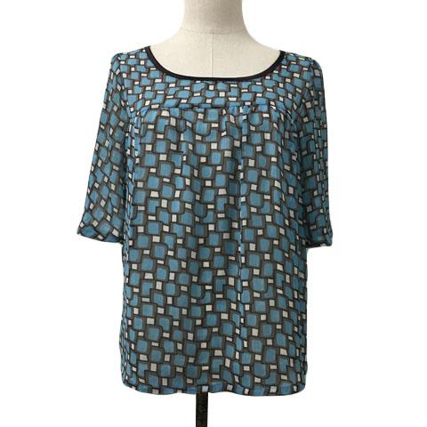 【中古】ナチュラルビューティーベーシック ブラウス カットソー プルオーバー シフォン 総柄 シアー 五分袖 M 水色