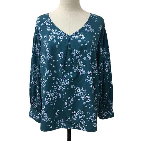 【中古】ニコアンド ブラウス カットソー プルオーバー Vネック 総柄 長袖 M 緑 紺 グリーン ネイビー レディース