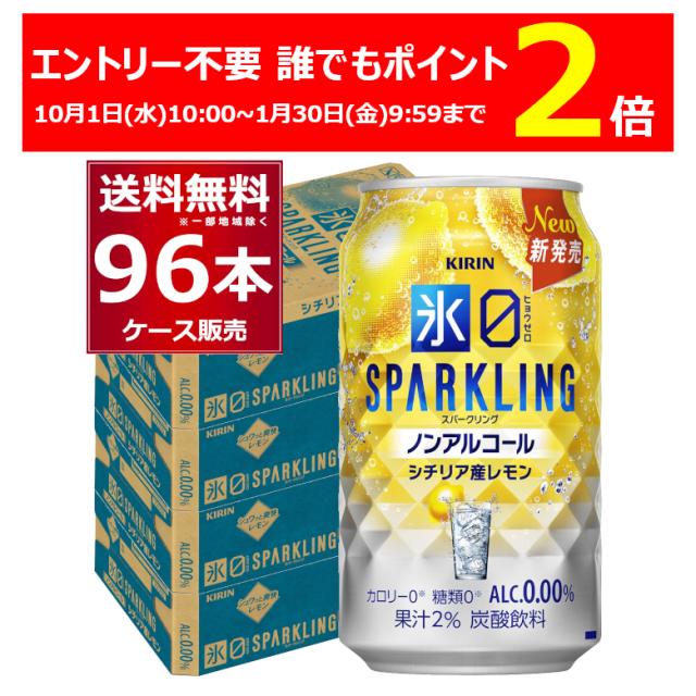 エントリー不要 誰でもP2倍 9/30 9:59までキリン 氷ゼロ スパークリング シチリア産レモン 350ml×96本(4ケース) ノンアル ノンアルコール チューハイ 糖類 カロリー ゼロ【送料無料※一部地域は除く】
