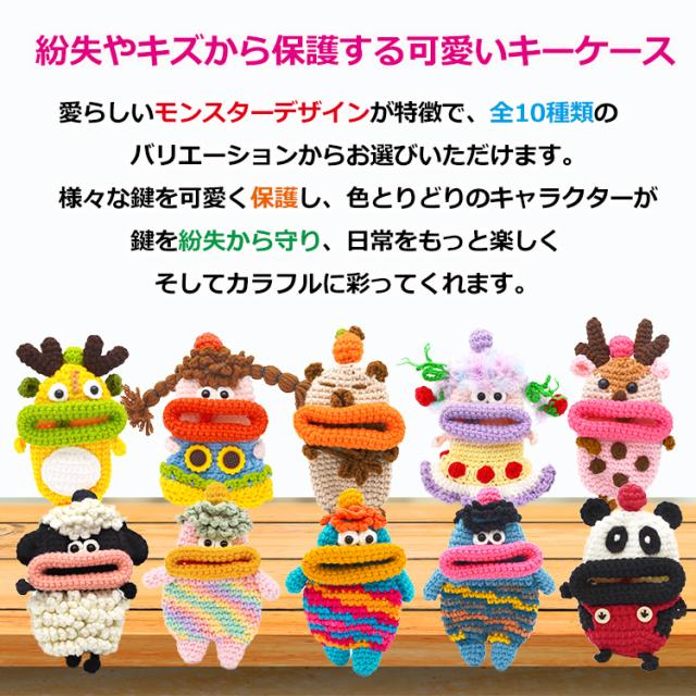 【個性豊かなモンスター】キーケース レディース メンズ 手編み スマートキーケース キャラクター キーカバー マスコットキーホルダー カー 車 鍵 収納 雑貨 小物入れ 手作り ハンドメイド 綿 毛糸のマスコット ぬいぐるみ おしゃれ かわいい SNS 人気